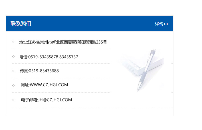 地址:常州市新北區(qū)友邦商務大廈1幢16、17層  電話:0519-85101652  傳真:0519-85112595  郵編:213022  網(wǎng)址:www.cz-jiayue_cn.cgwygl.com  郵箱:xiajifengaa@163.com